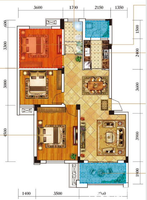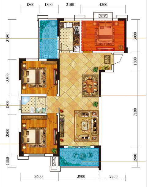 贯穿小区南北的沿河城市景观带,天然的将小区与牧之路隔开,园林设计师根据临河特性,巧妙的借势周边景观,以桥为纽带,将城市水系景观据为己用,透过潺潺流水,恰到好处的使水、草、树、石自然衔接。随意的一个季节,移步自家的阳台,体验自然与家的味道。